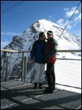 Tagwache um 03.45 Uhr und das am Sonntag. Keis Bitzeli normau , die! Aber das hat auch niemand behauptet. So zogen wir also gegen 04.50 Uhr los, um pünktlich 06.30 Uhr mit dem Zug ab Interlaken Ost Richtung Jungfraujoch loszufahren. Den Blick ängstlich zum Himmel gerichtet, der sich laut Wetterbericht eigentlich wolkenlos präsentieren sollte ,nahmen wir den Weg nach Interlaken unter die Autoräder. Mit einigen Zweifeln ,was uns am Ziel wetterbedingt erwarten würde, kletterten wir in den Zug. Holtertipolter Richtung Wengen — Kleine Scheidegg. Joch und Jungfrauspitze immer noch Wolkenverhangenals wir in den Tunnel Einfuhren. Was tut Mensch, wenn es nur Fels zu sehen gibt und Turis in allen Preis - und Sprachklassen. Er packt sein zweites Frühstück sprich „z’Nüni“ aus . Bei Liechtis im Eigertunnel besteht das aus Lachsbrötli mit Sekt. Man gönnt sich ja sonst fast nichts :-)) ! Auf das Kerzenlicht mussten wir verzichten, da die Bahnbetreiber aus Gewichts – und Platzgründen auf die in normalen Bahnwagen vorhandenen Ablageflächen verzichtet haben. Da können sie dann glotzen, die mit den schmalen Augen. Und wenn man aus dem Tunnel kommt . . . . Scheint die Sonne. . . .Oder was hesch de gmeint ? Liechti geht doch nicht raus wenn es regnet, der ist aus Zucker ! Viel Sonne, viel Schnee, viel Fels und saumässig viel Turisti. Ob es eine gute Idee ist, als Hemi auf 3500 m ü. M. durch den Schnee zu stapfen sei mal dahingestellt. Aber da oben gibt es noch mehr Behinderte ! Da ist also diese Frau, mit „Stögelischueh“und Sommerkleidli ohne Strümpfe, rotblond and very britisch! Föteli gits keis, das wär jo schad ume Spicherplatz. Und de natrürlech d’Japaner d’Inder und d’Italiäner, zum Töu i de nöi erschtangnige Summerhüdeli mit Schwiizerchrüz und Eduwiss oder der Nationaltracht und Strandsandäli .Wir haben den Tag genossen, vor allem als sich kurz vor Mittag die Wolkendecke geschlossen hat, und wir im warmen Restaurant beim Mittagessen, dem nun einsetzenden Schneegestöber zusehen konnten. Die restlichen Aktivitäten konnten wir Wetterunabängig im Indoor-Bereich geniessen.Von überwältigenden Eindrücken ermüdet, sind wir gegen 18.30 Uhr wieder zu Hause eingetroffen. Näbedrah hettes no es Bildli zum luege wies wär gsi. Und nächhär no eis, dass du gsehsch was du verpasst hesch !