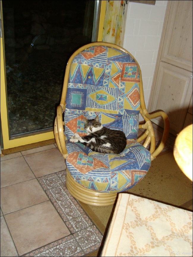 Eine weitere Ausgabe zum Thema Bänz ! Das Interesse an unserem Kostgänger ist in der Zwischenzeit so gross geworden, dass ich ihm bei Gelegenheit eine eigene Seite zuweisen werde.Ganz schön schlau das Kerlchen. Donnerstag Abend: Bänz liegt auf seinem Stuhl vor dem Ofen. Die Küche ist dunkel. Wir sitzen vor der Glotze im Schlafzimmer, also im bänzfreien Hausbereich. Plötzlich erscheint er auf der Schwelle der offenen Türe. Ich will ihn wieder auf seinen Patz zurückbegleiten, aber er bleibt vor der Türe zum Sitzplatz sitzen. Was am Morgen noch von einer 5 minütigen "Hetzjagd"beleitet war,klappt jetz ohne grössere Probleme. Bänz schreitet in die Dunkelheit der Nacht. Freitag-Morgen : Christa hat Frühdienst! um 05.30 h ca. schreitet Bänz ums Haus und weckt mich auf.(Bio-Pelz-Wecker).Der Christa-Wecker ging nicht los weil nicht eingestellt! Etwas später als geplant und ohne Frühstück,macht sich Christa auf den Weg nach Burgdorf. Ich frühstücke alleine und beginne mit der Tagesbeschäftigung (Bänz rein, Bänz raus).Das Wetter ist nicht für Outdoorunternehmungen gemacht. Bänz geht bei der Eingangstüre raus, ums Haus herum und sitzt, wenn ich in der Küche angelangt bin, vor dem Fenster und begehrt Einlass. Wenn er wieder an die frische Luft will sucht er mich und setzt sich neben mich. Wenn ich aufstehe geht er vor zur Türe wo er raus will, um sich gleich wieder vor das nächste Fenster zu setzen. In den Pausen dazwischen erledige ich meine Morgentoilette und die aus aktuellem Geschehen entstehenden Tagebucheinträge. |
