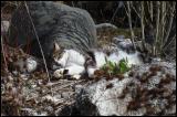 Der Kernbeisser beisst die Kerne und das sichtlich gerne! Wir wenden uns für den Moment von Bänz ab und widmen uns kurz den Flugviechern. Ein einzelner Grünfink hat den Winter überlebt und hüpft munter auf unserem Futtertisch herum. In der Hauptsache sind es aber die versch. Meisenarten, die bei uns ihren Hunger stillen. Kürzlich wagte sich sogar der Buntspecht bis zum Treppengeländer das zum "unteren Sitzplatz" führt. Zur gleichen Zeit tummelten sich auch zwei Schwanzmeisen in den Ästen der Haselstaude. Leider reicht das Objektiv meines Fotoapparates nicht aus, um Bilder zu machen, auf denen auch noch ein Vogel im Ufergehölz , als Solches zu erkennen wäre. Und nun zu Bänz. Er hat sich tatsächlich verletzt! Nach einem ersten Augenschein unsererseits, handelt es sich um eine Schnittwunde, die er aber bereits sehr gut selber versorgt hat. Gestern nachmittag sass er vor dem Fenster und hat mir den Schaden präsentiert. Er liess sich überreden ins Haus zu kommen und ein wenig zu Fressen. Weil ich annahm, dass er nicht gut springen kann, habe ich ihm sein Frottétuch vom Thron auf den Boden gelegt, worauf Bänz ohne Probleme mit einem sicheren Sprung auf dem ungeschützten Thronkissen landete. Den ganzen Nachmittag genoss er unsere Fürsorge und die geschützte Ruhe auf dem Katzenthron. Nach dem Nachtessen setzte ich mich kurz auf den Chef-Sessel. Bänz erhob sich und kletterte sofort auf meinen Schoss, wo er sich bänzmässig einrollte und mir Gelegenheit bot, ihn etwas sorgfältiger zu Untersuchen. Die Aussenseite seiner Pfote ist unverletzt und scheint ihn auch nicht zu schmerzen. Auch der Rest des Körpers zeigt keine Kampfspuren, so dass wir davon ausgehen können, dass es sich lediglich um eine "Kletterverletzung" handelt. Nach diesen Streicheleinheiten begab er sich zum Futternapf für die Nachtration. Danach verliess er uns ohne Zwängerei durch die offene Küchentüre. |