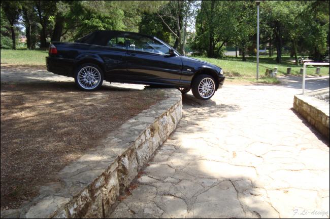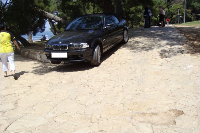 BMW Cabrio mit Mittelständer, die Technik machts Kroatische Fahrkünste in der Flanierzone |