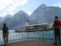 BETRIEBSAUSFLUG IM KLEINEN RAHMEN ! Um 10.30 h ungefähr ging es los Richtung Zentralschweiz. Erster Halt Beckenried am Stättseewaldvierer. Der grosszügige Stahlkahn brachte uns über Brunnen/Rütliwiese zu unserem Ziel der Tellsplatte. Da sich die meisten anderen Gäste tourimässig klischeehaft an der Sonne aufhielten konnten wir im praktisch leeren Speisesalon des Schiffes unser Mittagsmahl zu uns nehmen. Ich entschied mich für "Fisch auf dem Schiff". Auf der Tellsplatte angekommen wendeten wir uns dem Weg der Schweiz zu und trampelten einige hundert Meter Richtung Brunnen. Dabei erschreckten wir einige Schweizer-Ur-Drachen in Schmalspurausführung(Zauneidechsen!). Auch eine Entenmutter mit 6 piepsend schwimmenden Miniflaumbällen tangierte unsere "Wanderroute". Zurück bei der Tellsplatte belohnten wir unsere Sonderleistung mit einem Eis. Ausgeruht und gestärkt machten wir uns auf den Weg zur Tellskapelle. Die befindet sich am anderen Ende der Schweiz. Denn als wir nach 15 Minuten bei selbiger ankamen,waren wir bald von französich-sprechenden Menschen eingehüllt. Zurück im Restaurant füllten wir unseren Flüssigkeitstank und warteten im schattigen Garten des Restaurants auf das nächste Schiff. In Brunnen legten wir eine kurze Softice-Pause ein bevor wir mit dem/der "Gotthard" Richtung Beckenried raddampften. Mit dem Auto entflohen wir den sich aufbäumenden Gewitterwolken.