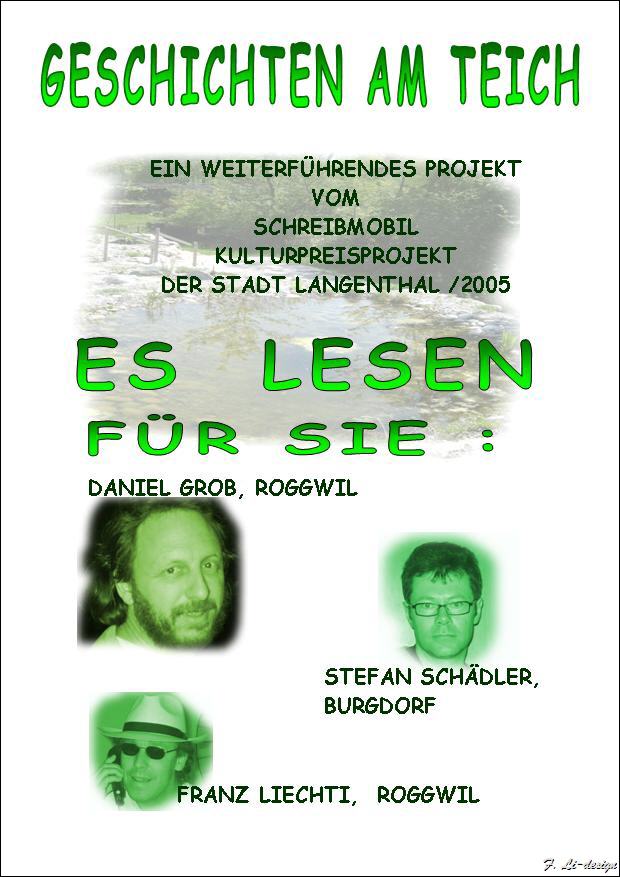 Es war erst Spätsommer und in ihrem Übermut meldeten die Autoren ihre Geschichten für den kommenden November an."Und zweitens kommt es anders".Bei drei fertigen Geschichten würde der nächste Anlass in der Reihe "Geschichten am Teich" organisiert.Die erste Geschichte kam im Feb 2008 ! |