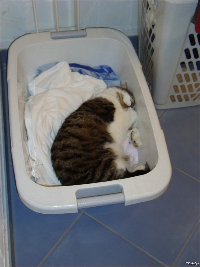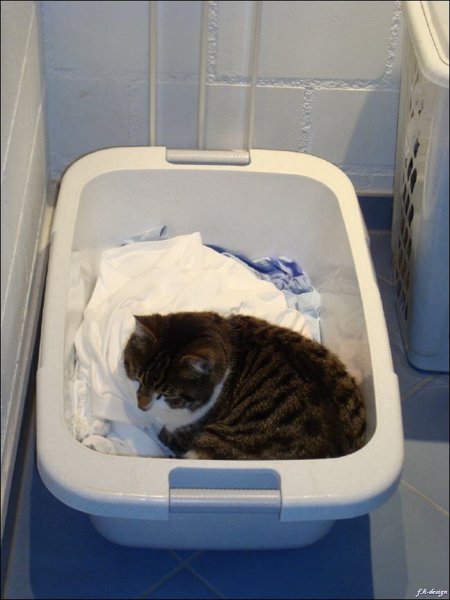 Im Badezimmer ist es sicher warm Der Wäschekorb meine neueste Errungenschaft |