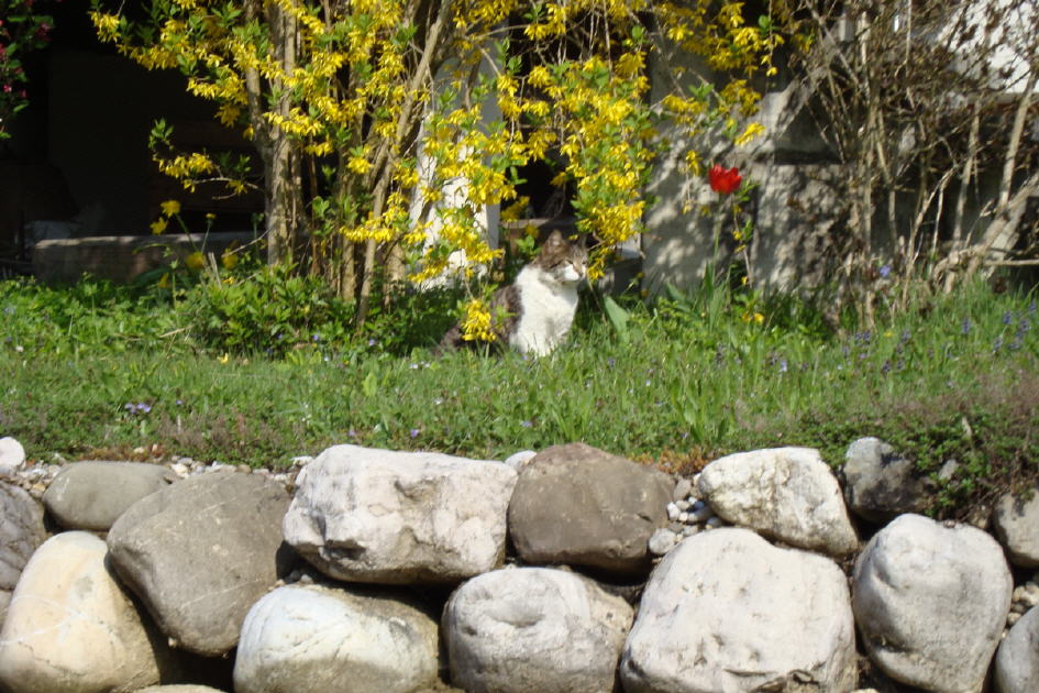 Es war ganz am Anfang.Ich lag noch vor derTüre zum Esszimmer, da haben die Zweibeiner nach einem Namen für mich gesucht! Aus unerklärbaren Gründen und unverständlichen Aspekten fiel des öfteren der Titel "Dolce Vita"!Zum Glück war ihnen das zu kompliziert und sie fanden den neuen viel passenderen Namen "Bänz"! |