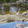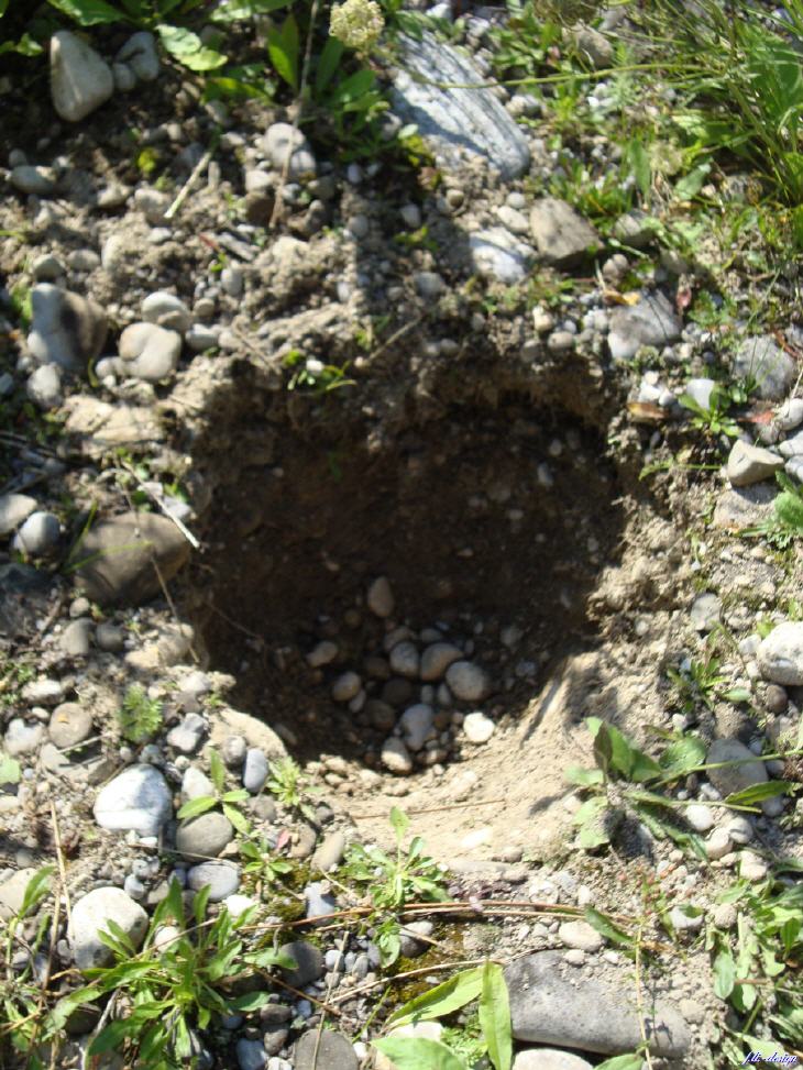 Wunsch nach neuen Trinkgefässen zufrieden, der Gärtner die Vorstellung eines weissen Hibiskus auf der Südseite des Hauses. Der Betrag des Gutscheins ermöglichte uns auch den Erwerb eines neuen Lavendelstrauches beim Eingang/Nord unserer Behausung.Man könnte die neuerstandenen Gewächse im Topf hinstellen und regelmässig giessen, oder man beginnt damit, die Umgebung zu löchern. Ich entschloss mich zu Variante zwei und begann mit dem Aushub der Bären-/Wolfsfallen. Die Locherei schritt zügig voran, nur beim Aufstehen bekundete ich einige Mühe und legte mich mit einer eleganten Rolle seitwärts neben meine Arbeit.Um dem Sturz in die Bärenfalle vorzu beugen, übernahm Christa das Einpflanzen der neuen Gewächse.