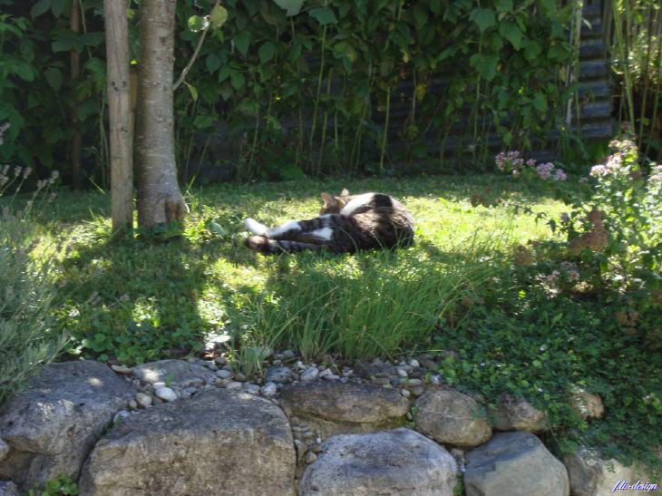 HERR BÄNZIGER : Er durfte natürlich nicht fehlen bei der Gartenarbeit."Es herbschtelet scho zümftig".Ein Grund mehr , sich näher bei den Türen aufzuhalten.Ab und zu, vor allem auf dem Sitzplatz,bekommt er schon mal was vom Tisch,was er natürlich sehr schätzt.