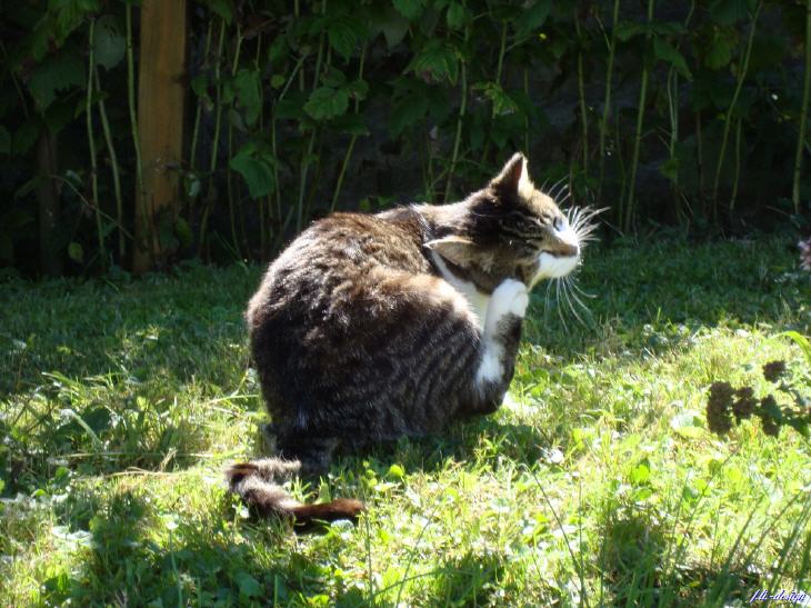 BÄNZ IM STRESS : Wenn doch nur Ruhe einkehren würde. Das arme Katzentier muss sich in diesem Jahr laufend auf Veränderungen einstellen. Mal sind wir unterwegs, mal ist es Frau Liechti sen.! Da Bänz das ganze Grundstück/ Quartier zu seinem Besitztum erklärt hat, stört ihn das wenig. Hauptsache, es gibt irgendwo Futter und tagsüber ein ruhiges Plätzchen zum schlafen.Trotz aller Unruhe, neuen Gerüchen und Menschen/Tieren,findet er immer wieder zum "normalen" Rhythmus zurück.Nach einer kurzen Schreckphase, wo er sehr vorsichtig und misstrauisch reagiert,beruhigt er sich wieder und kehrt zu den "alten " Plätzen zurück. Unruhig geht es auch in den Herbst und Vorwinter.