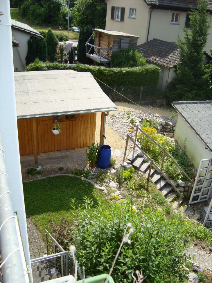 unter der Sonnenstore und geniesse den ersten Kaffee des Jahres auf dem südlichen Sitzplatz.