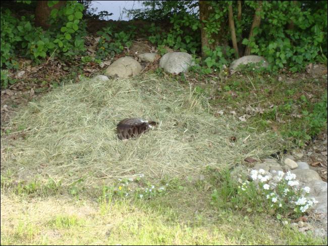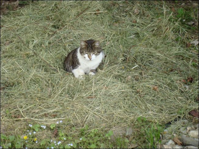 Die Katze auf dem Dach :Es scheint sein neuestes Hobby zu sein. Beinahe täglich poltert er über unseren Köpfen. Es wird Sommer. Unser Kostgänger benimmt sich wie ein normaler Kantinengänger. Kommt, frisst , geht. Liegt in der Gegend rum. . . . . Auf der Mauer, auf der Mauer . . . . . . . ! ! Davon haben wir genügend und zwischen den Steinen krabbelt Dieses und Jenes und das Meiste scheint fressbar zu sein, oder zumindest jagbar. Tiger im Freigehege. Nach einigen Tagen im Freien, kommt er anscheinend wieder gerne zum Kuschelabend vor der Glotze.