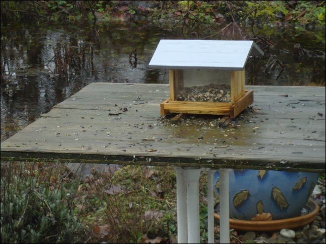 Liechti's Mc - fly - in : Wir sind bereit ! Das Futterhaus steht im Regen. Zurzeit noch. Die ersten Tiefflieger besuchen uns bereits regelmässig.