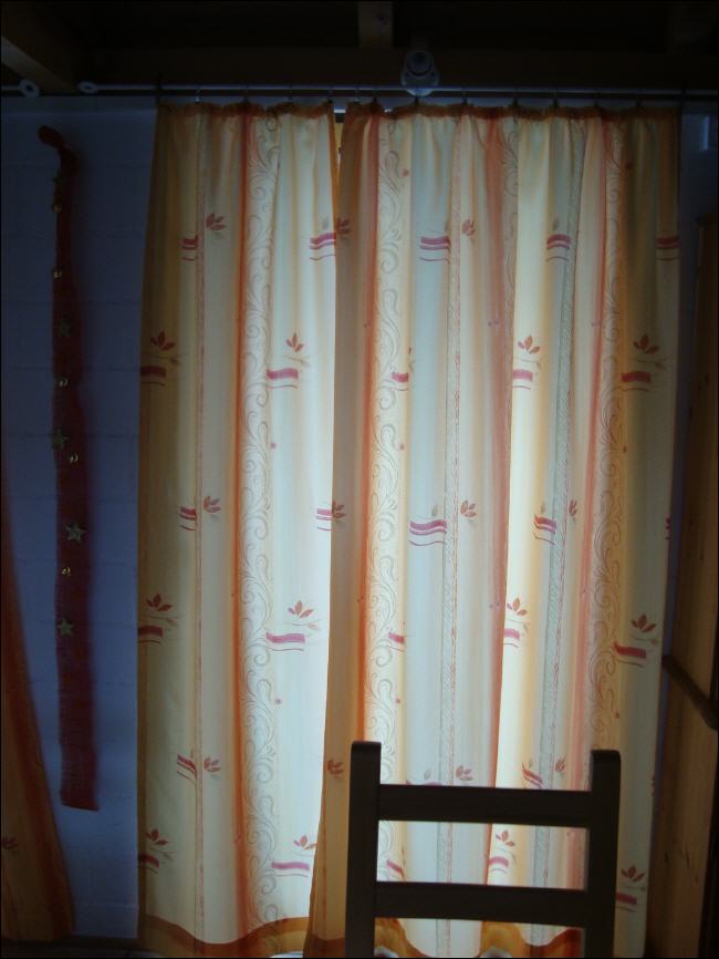 Christa hat die neuen Vorhänge fertiggenäht. Farbe und Lichtdurchlässigkeit passen und entsprechen den von uns gemachten Vorstellungen.